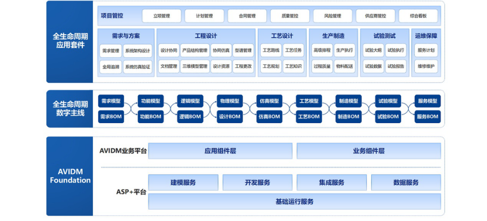 基于神軟ASP+平臺五大服務能力開發AVIDM業務平臺,實現了應用組件層和業務組件層,提供了多種通用及可復用的功能模塊,面向多個業務應用進行使用,完成面向工業軟件的全生命周期支撐。以神軟ASP+平臺和AVIDM業務平臺為基礎構建了AVIDM Foundation底座,統一支撐數字化協同研制系統AVPLM。ASP+面向AVPLM的關鍵技術研究,突破制約全生命周期數據管理發展的3類13項關鍵技術,其中超過一半的關鍵技術在神軟ASP+平臺支撐能力中實現技術突破,在數據全周期統一建模與模型實例化管理、多組織業務數據隔離與權限體系設計等五項核心關鍵技術領域,取得了突破,技術研究成果已經應用于神軟ASP+平臺級服務中。