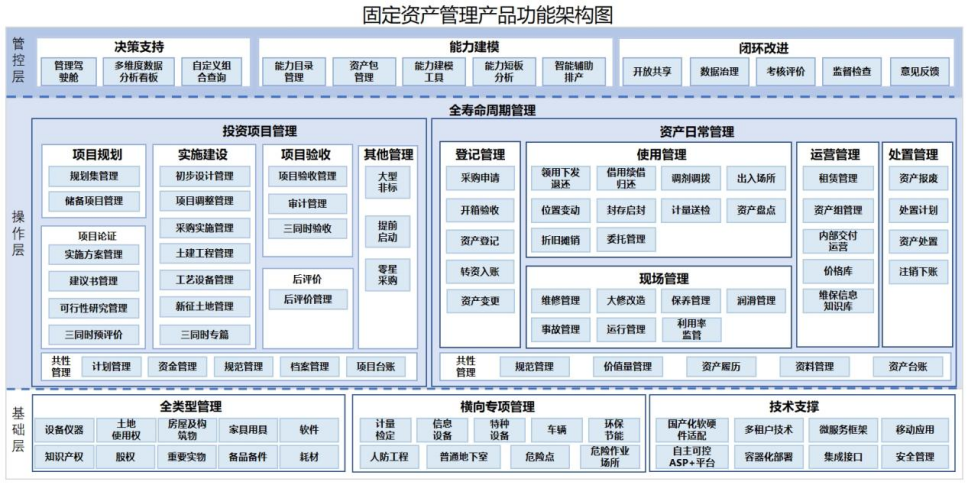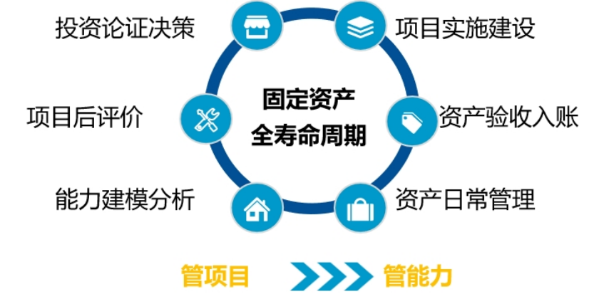 投資經營全過程:從固定資產投資項目規劃、投資決策、項目實施、驗收,到固定資產運營、處置、項目評價全壽命周期管理。